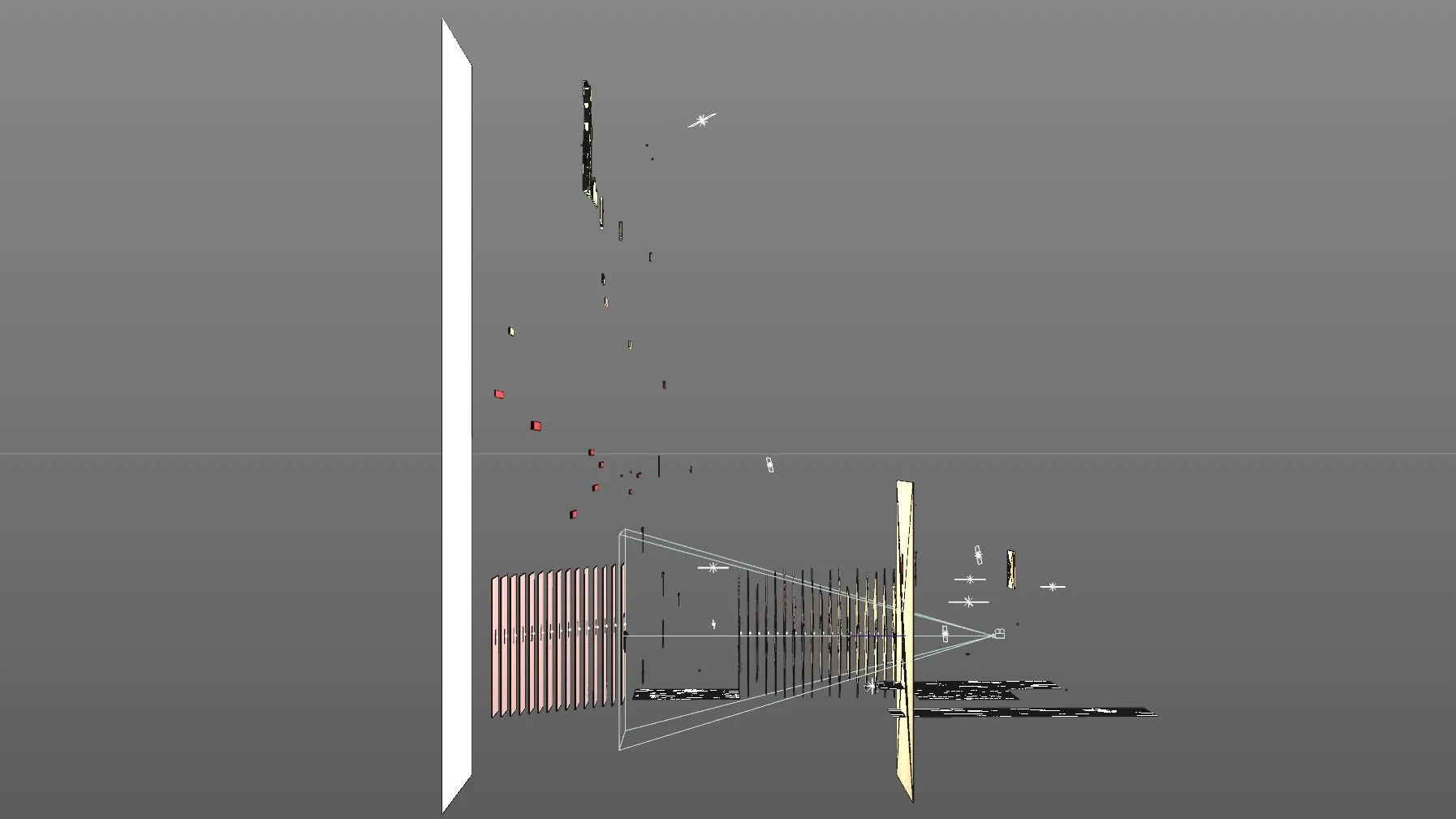 Having a complex structure that is all connected required me to create special transitions throughout the animation. In order to achieve this, I rendered certain sections a second time without certain elements, and cross-faded them together so that I could decide when the next section came in. These two images represent the same frame, one with more elements than the other